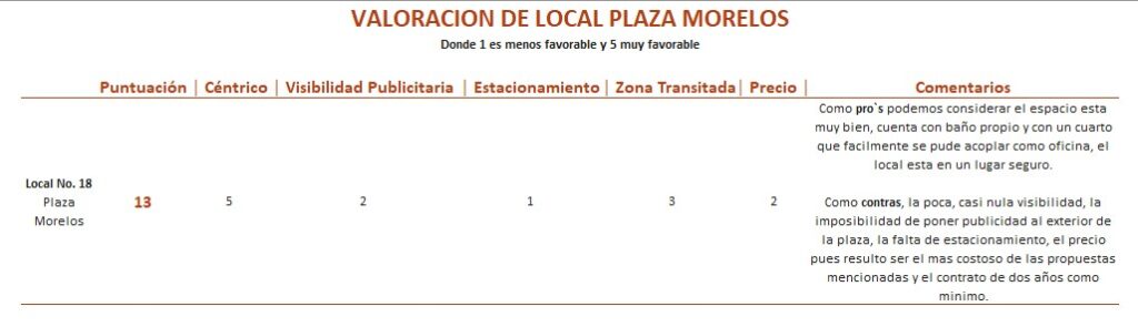 Al igual que con los locales anteriores anexo a modo de referencia mi evaluación.